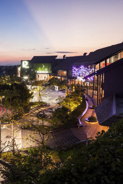 由Chanon Wangkachonkiat事務(wù)所設(shè)計,購物廣場為顧客提供了一個共享活動空間,設(shè)計理念來自于周邊山區(qū)等高線地形,一些高差錯落的臺地、路面圖案、形狀起伏的花冢、臺階、座椅及水系,將整個環(huán)境營造出自然、生態(tài)的共享活動空間。